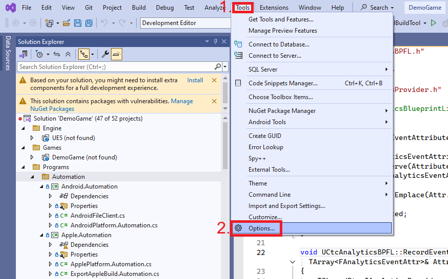To activate it, navigate via the toolbar menu to Tools → Options